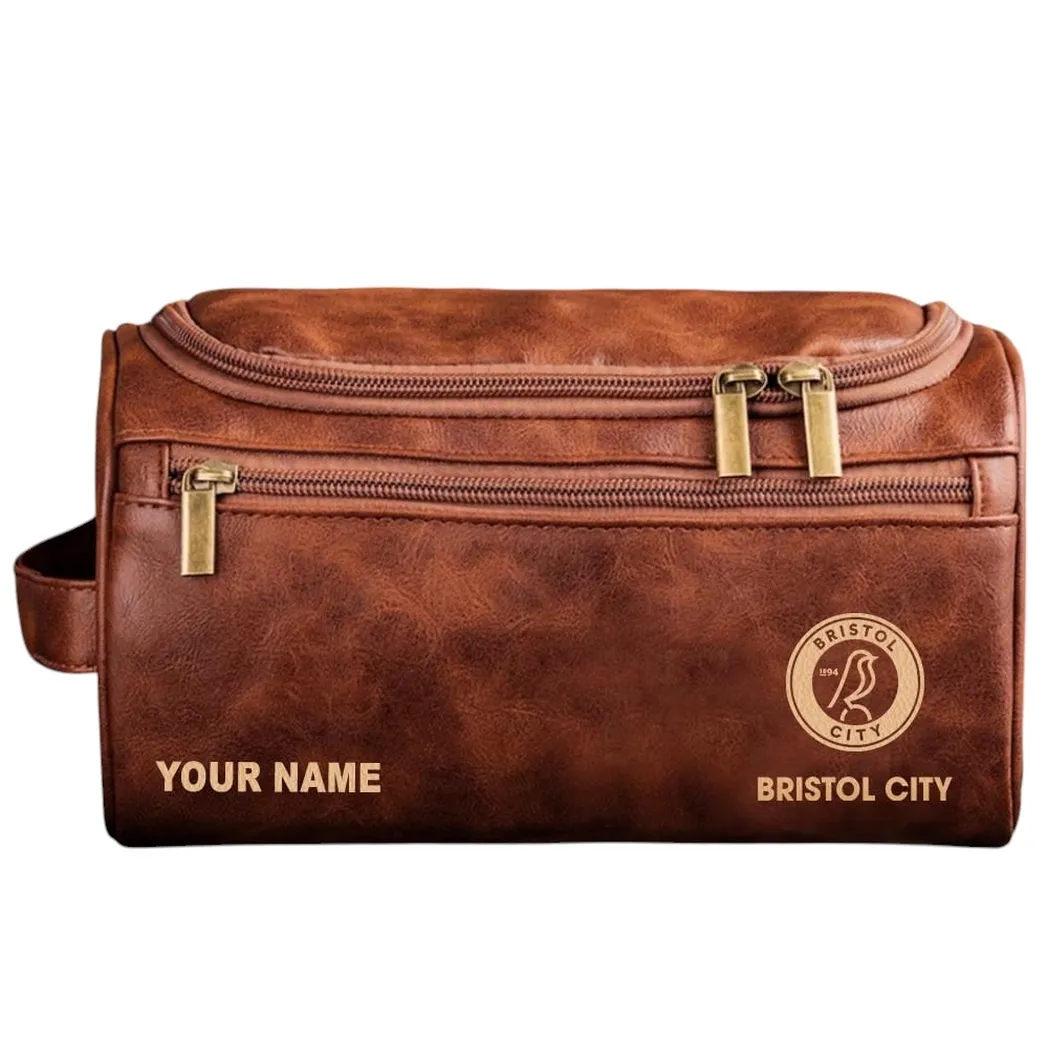 Bristol City Leather Toiletry Bag, All Over Print Leather Toiletry Bag Bristol City - Dark Brown DEPL5405092051