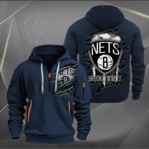 Brooklyn Nets Hoodie Half Zipper NBA56180125022 – Gift For Fan Brooklyn Nets – Blue