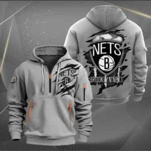 Brooklyn Nets Hoodie Half Zipper NBA56180125022 – Gift For Fan Brooklyn Nets – Grey