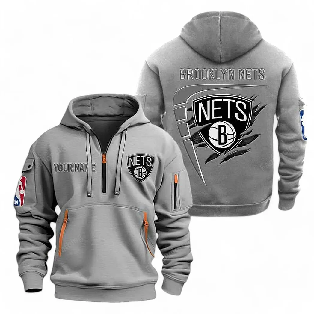 Brooklyn Nets NBA Hoodie Half Zipper NBA07010224890, Gift For Fan Brooklyn Nets - Gray
