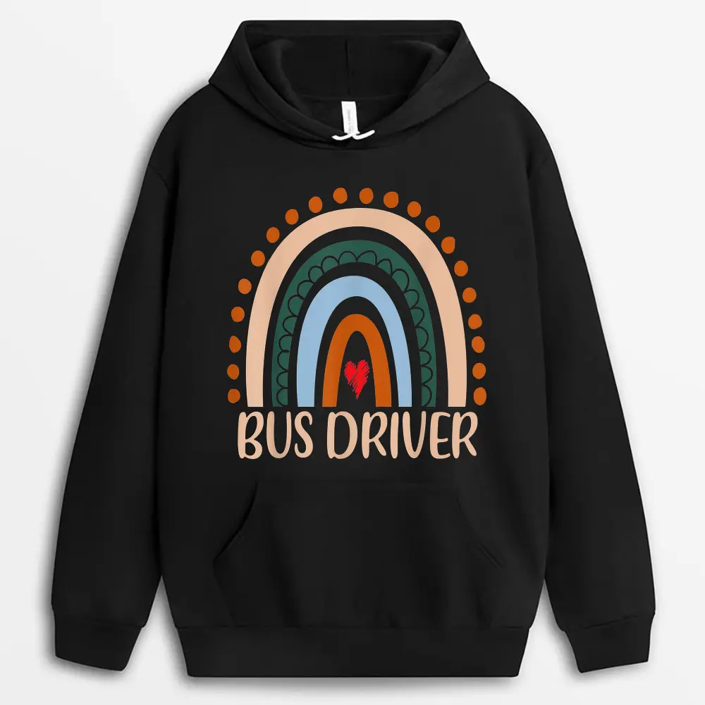 Bus Driver Rainbow Appreciation Day Hello Back To School Hoodie – Black