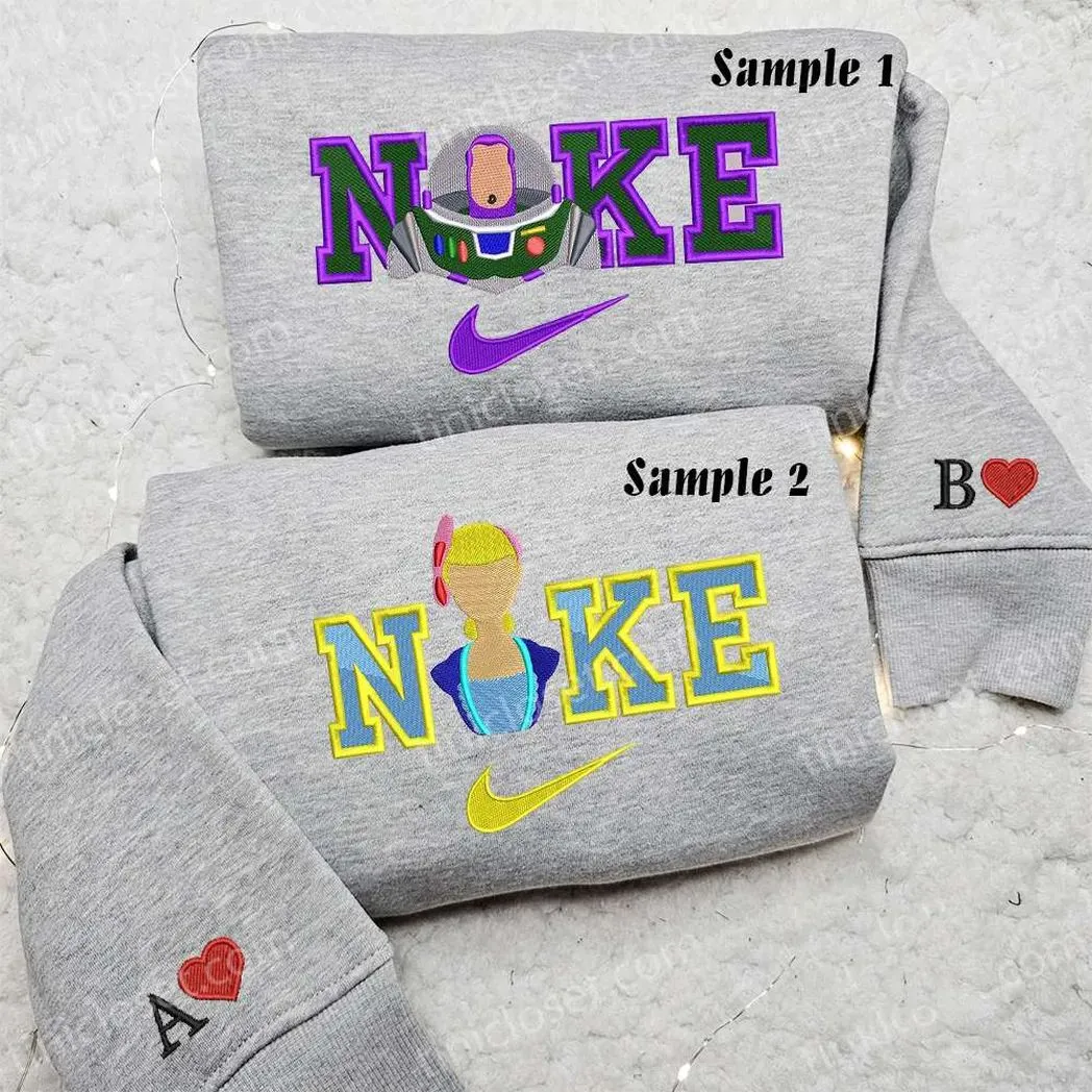 Buzz Lightyear And Bo Peep x Nike Embroidered Shirt, Embroidered Sweatshirt Fashion Style For Couples