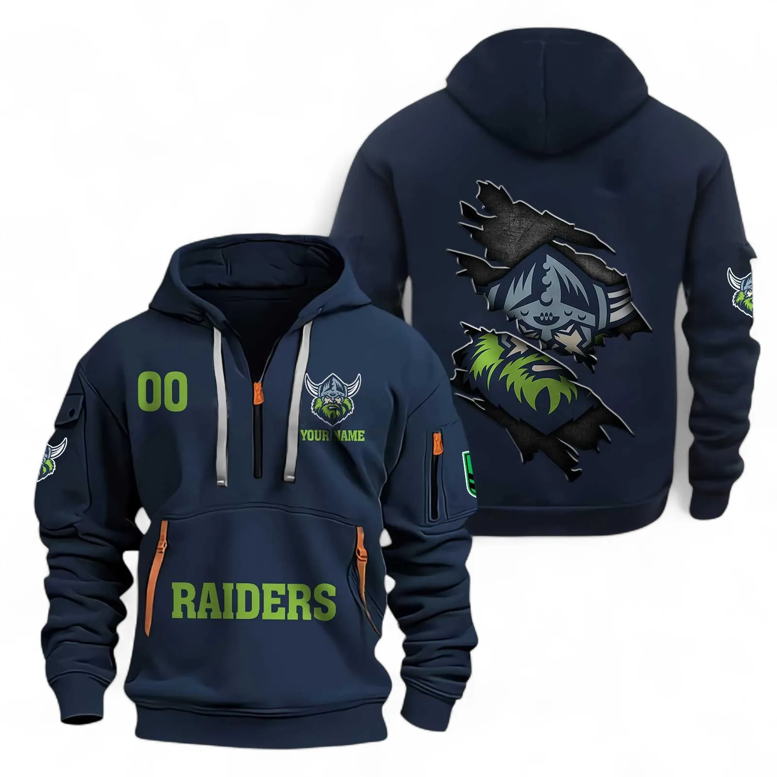 Canberra Raiders Fans Gift Hoodie Half Zipper, All Over Print Hoodie Half Zipper For Sport Fan, Custom Name NRL170071525342-Navy