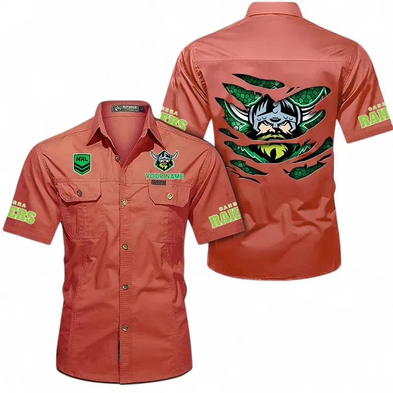 Canberra Raiders Fans Gift Short Sleeved Shirt, All Over Print Short Sleeved Shirt For Sport Fan, Custom Name NRL171071625559-Khaki
