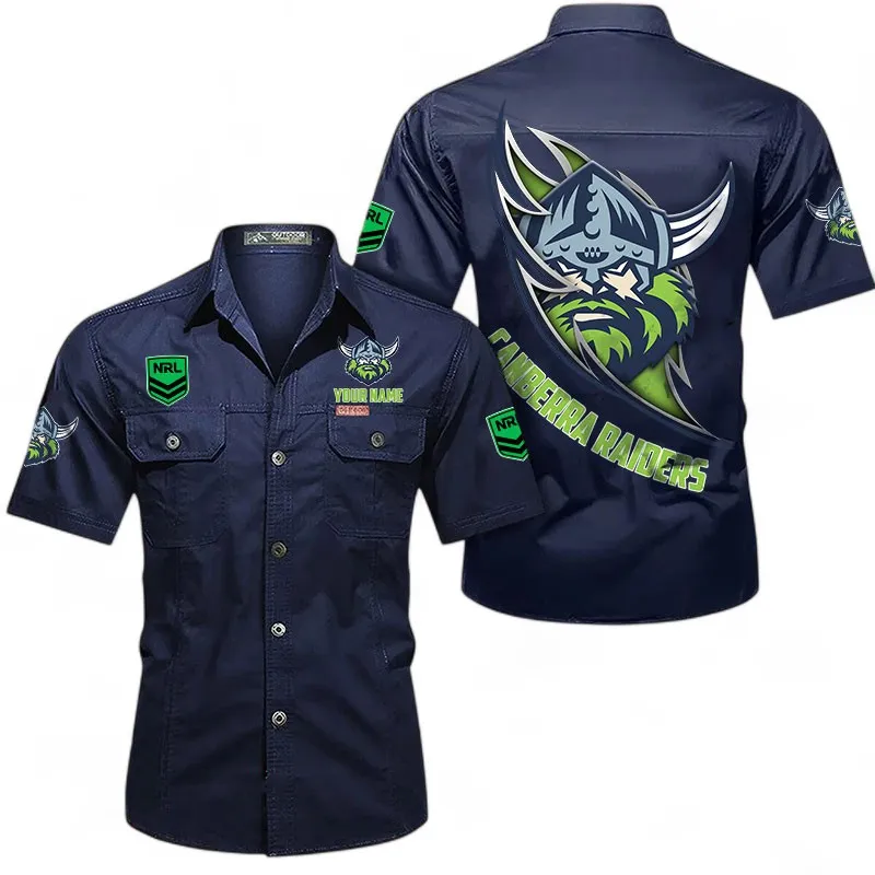 Canberra Raiders Fans Gift Short Sleeved Shirt, All Over Print Short Sleeved Shirt For Sport Fan, Custom Name NRL173071625006-Dark Blue