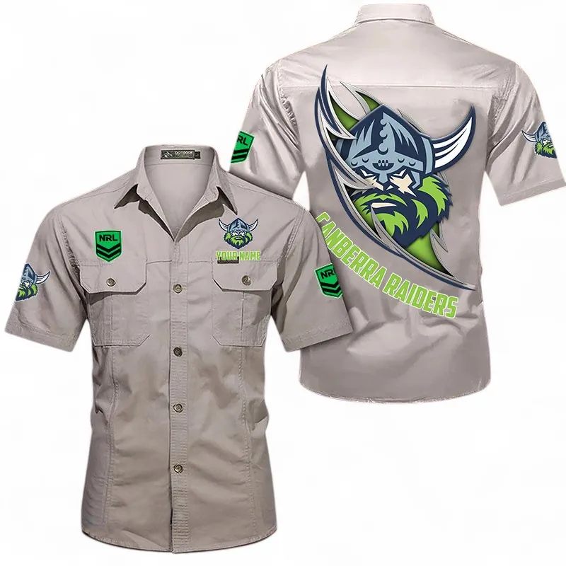 Canberra Raiders Fans Gift Short Sleeved Shirt, All Over Print Short Sleeved Shirt For Sport Fan, Custom Name NRL173071625006-Khaki