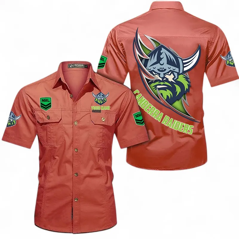 Canberra Raiders Fans Gift Short Sleeved Shirt, All Over Print Short Sleeved Shirt For Sport Fan, Custom Name NRL173071625006-Army Green