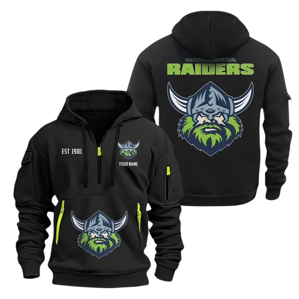 Canberra Raiders Hoodie Half Zipper, All Over Print Hoodie Half Zipper Canberra Raiders DNRL1356302036 - Black