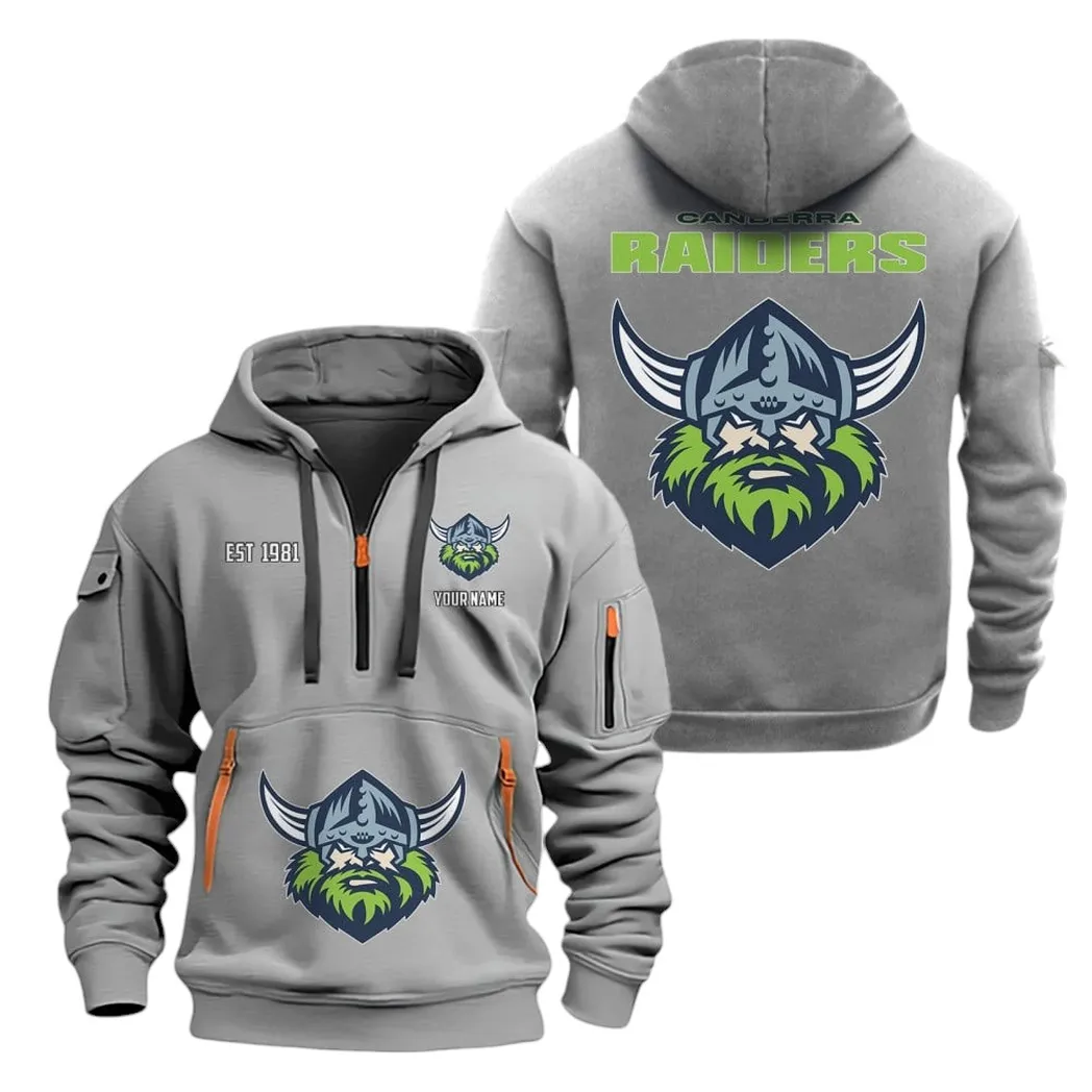 Canberra Raiders Hoodie Half Zipper, All Over Print Hoodie Half Zipper Canberra Raiders DNRL1356302036 - Grey