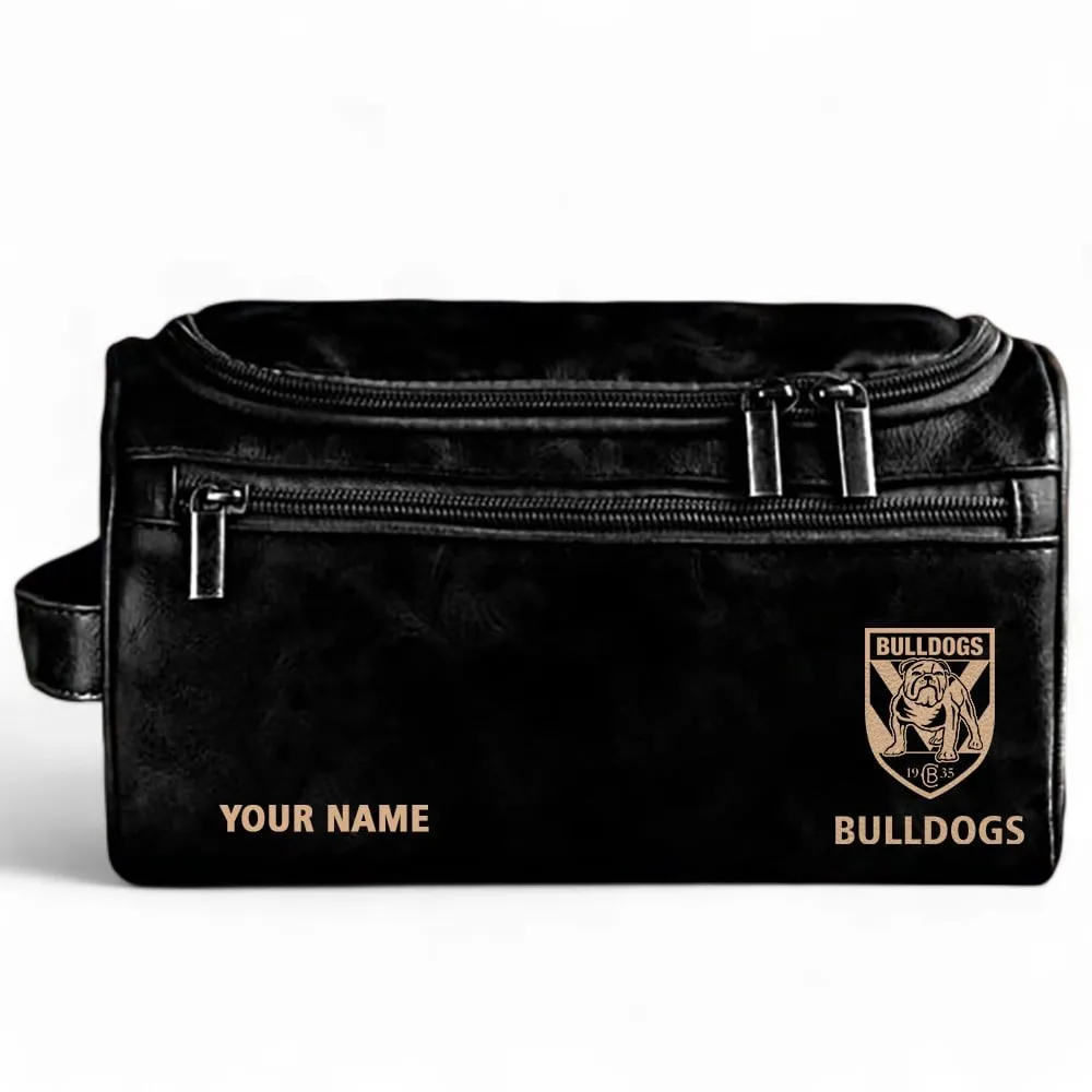 Canterbury-Bankstown Bulldogs  Fans Gift Leather Toiletry Bag, All Over Print Leather Toiletry Bag For Sport Fan, Custom Name NRL177071525670-Black