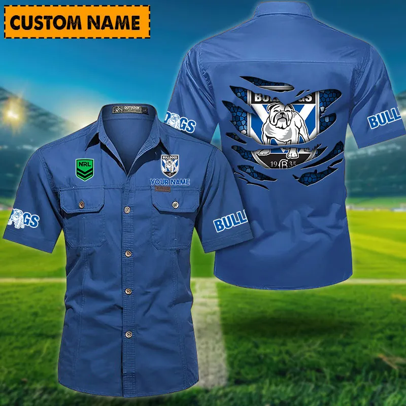 Canterbury-Bankstown Bulldogs Fans Gift Short Sleeved Shirt, All Over Print Short Sleeved Shirt For Sport Fan, Custom Name NRL171071625566-Cowboy Blue