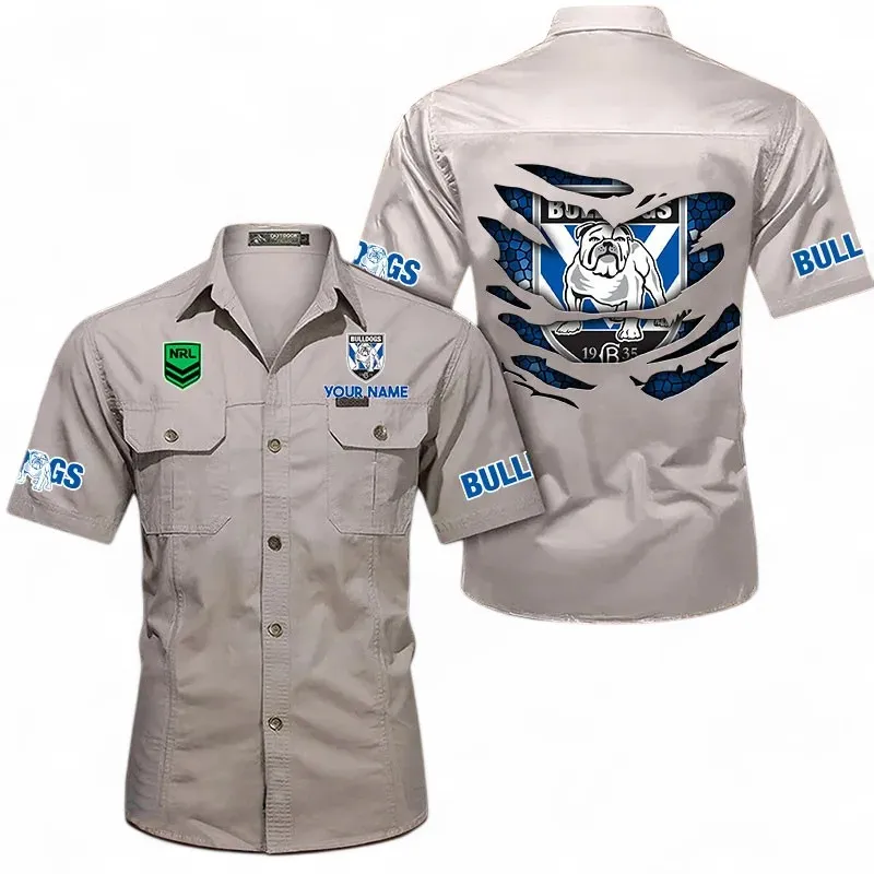 Canterbury-Bankstown Bulldogs Fans Gift Short Sleeved Shirt, All Over Print Short Sleeved Shirt For Sport Fan, Custom Name NRL171071625566-Khaki