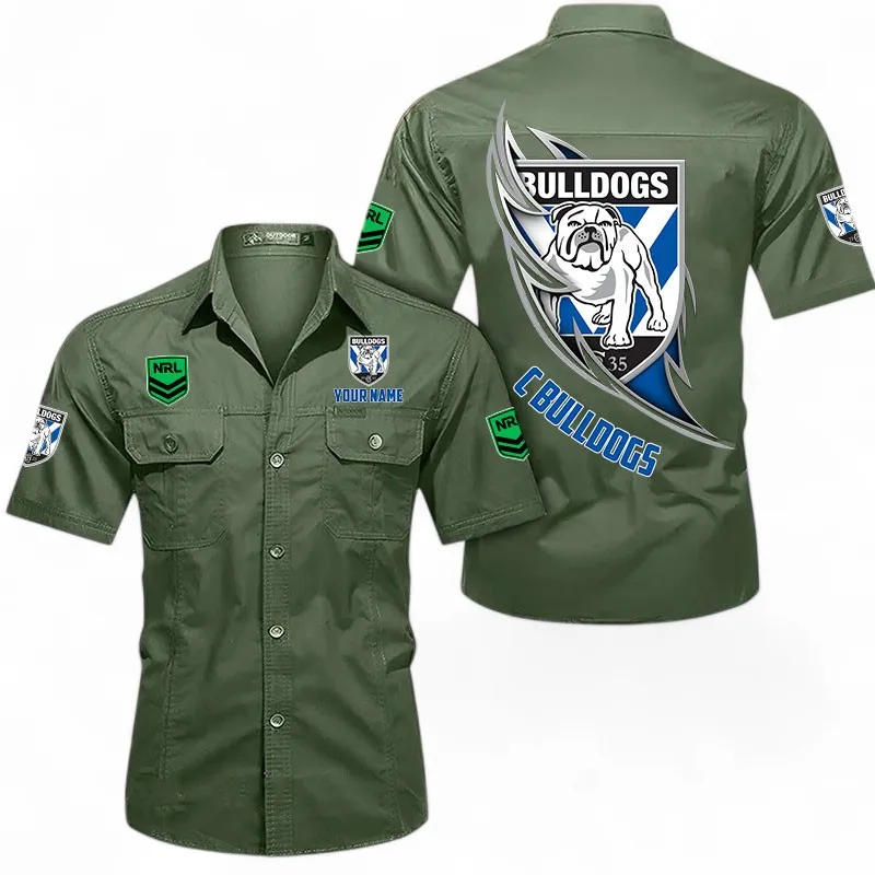 Canterbury-Bankstown Bulldogs Fans Gift Short Sleeved Shirt, All Over Print Short Sleeved Shirt For Sport Fan, Custom Name NRL173071625004-Army Green