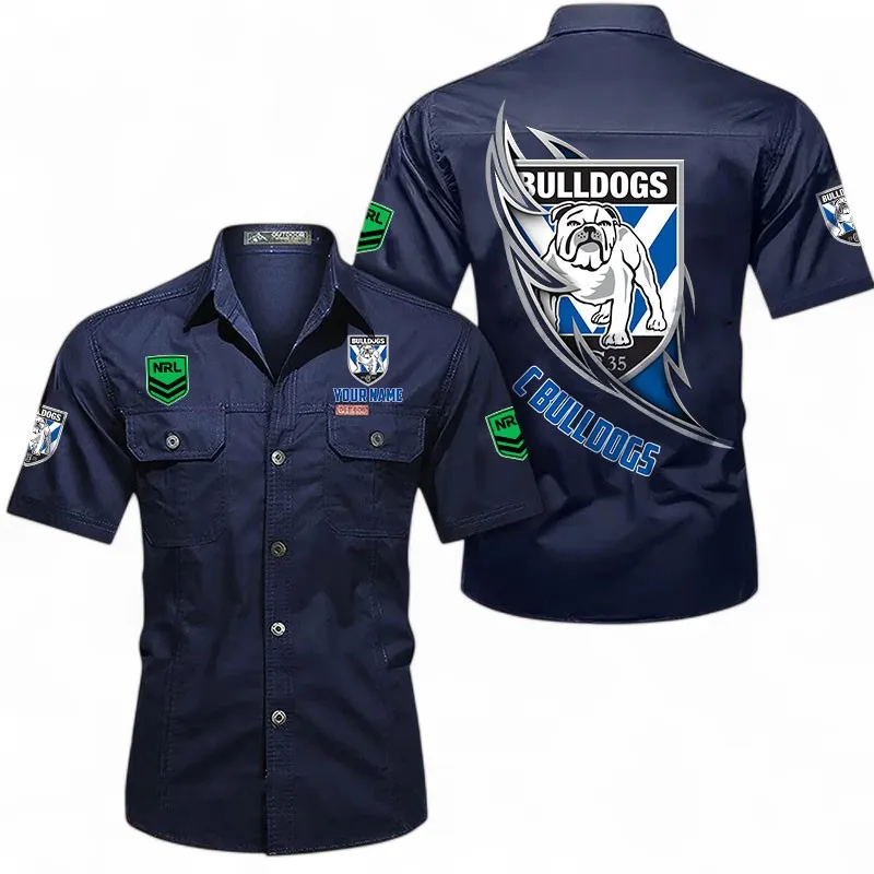 Canterbury-Bankstown Bulldogs Fans Gift Short Sleeved Shirt, All Over Print Short Sleeved Shirt For Sport Fan, Custom Name NRL173071625004-Dark Blue