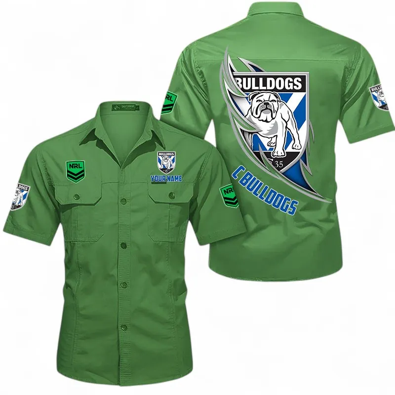 Canterbury-Bankstown Bulldogs Fans Gift Short Sleeved Shirt, All Over Print Short Sleeved Shirt For Sport Fan, Custom Name NRL173071625004-Army Green