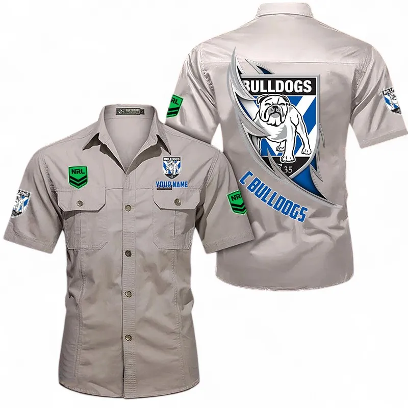 Canterbury-Bankstown Bulldogs Fans Gift Short Sleeved Shirt, All Over Print Short Sleeved Shirt For Sport Fan, Custom Name NRL173071625004-Khaki