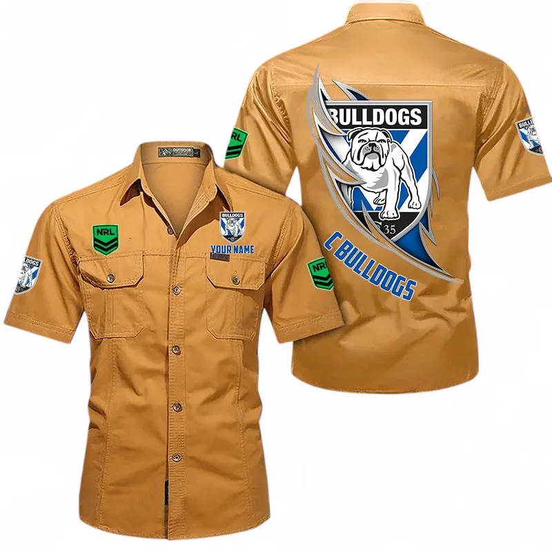 Canterbury-Bankstown Bulldogs Fans Gift Short Sleeved Shirt, All Over Print Short Sleeved Shirt For Sport Fan, Custom Name NRL173071625004-Khaki