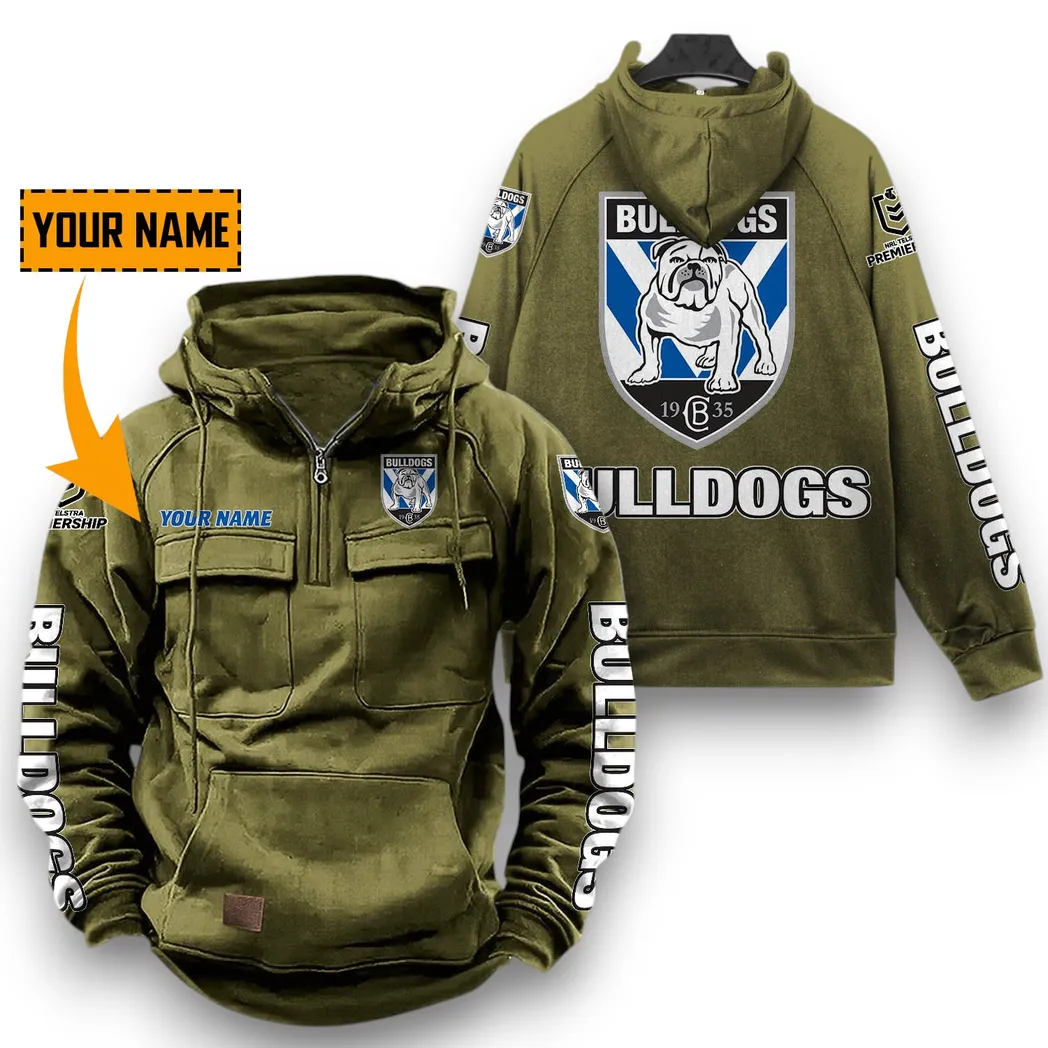Canterbury-Bankstown Bulldogs NRL Tactical Quarter Zip Hoodie NRL29012325562, Gift For Fan Canterbury-Bankstown Bulldogs - Khaki