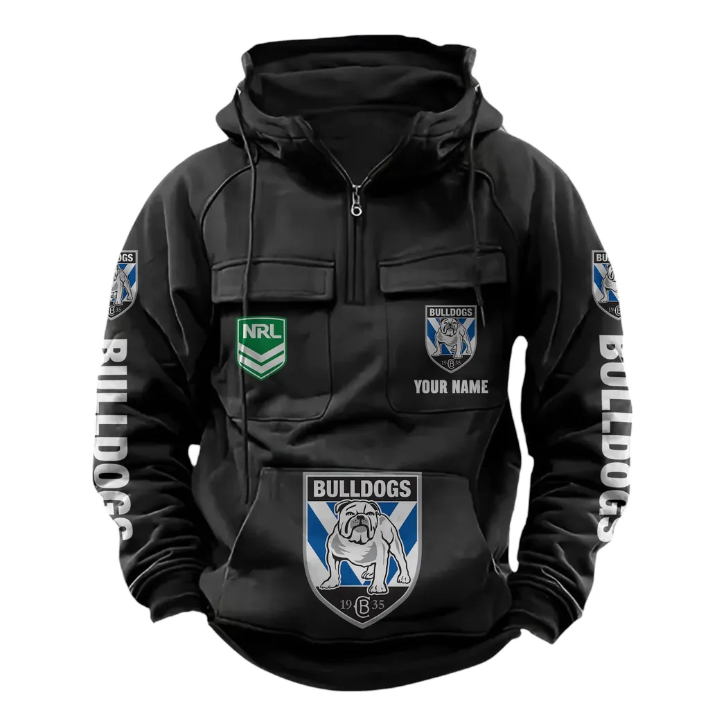 Canterbury-Bankstown Bulldogs NRL Tactical Quarter Zip Hoodie NRL43012125561, Gift For Fan Canterbury-Bankstown Bulldogs - Black