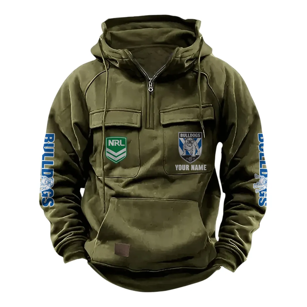 Canterbury-Bankstown Bulldogs NRL Tactical Quarter Zip Hoodie NRL43012125578, Gift For Fan Canterbury-Bankstown Bulldogs – Army Green