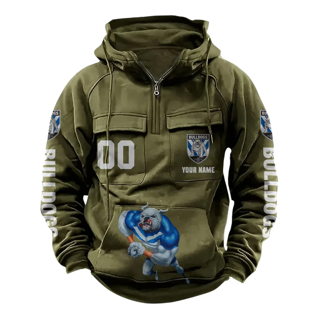 Canterbury-Bankstown Bulldogs NRL Tactical Quarter Zip Hoodie NRL43012125597, Gift For Fan Canterbury-Bankstown Bulldogs - Army Green