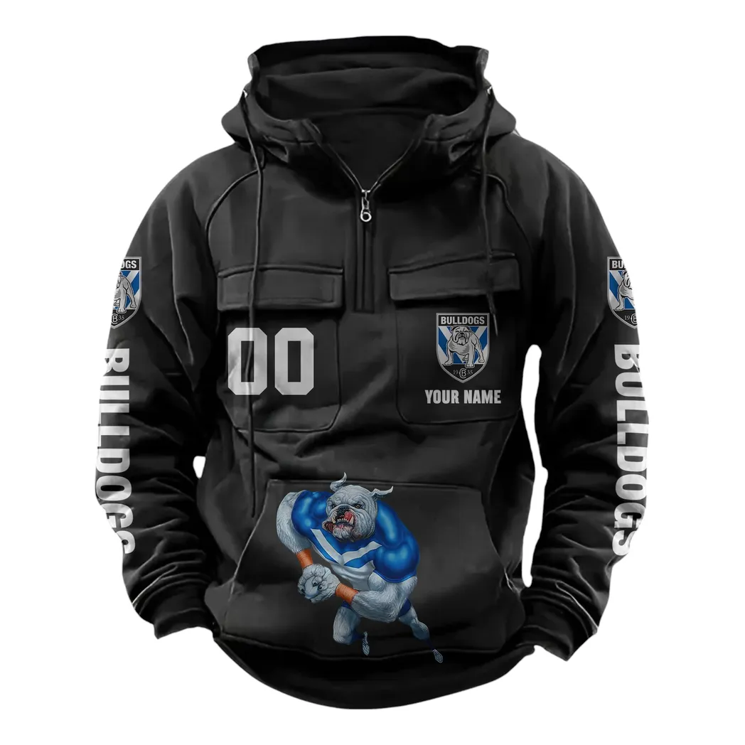 Canterbury-Bankstown Bulldogs NRL Tactical Quarter Zip Hoodie NRL43012125597, Gift For Fan Canterbury-Bankstown Bulldogs - Black