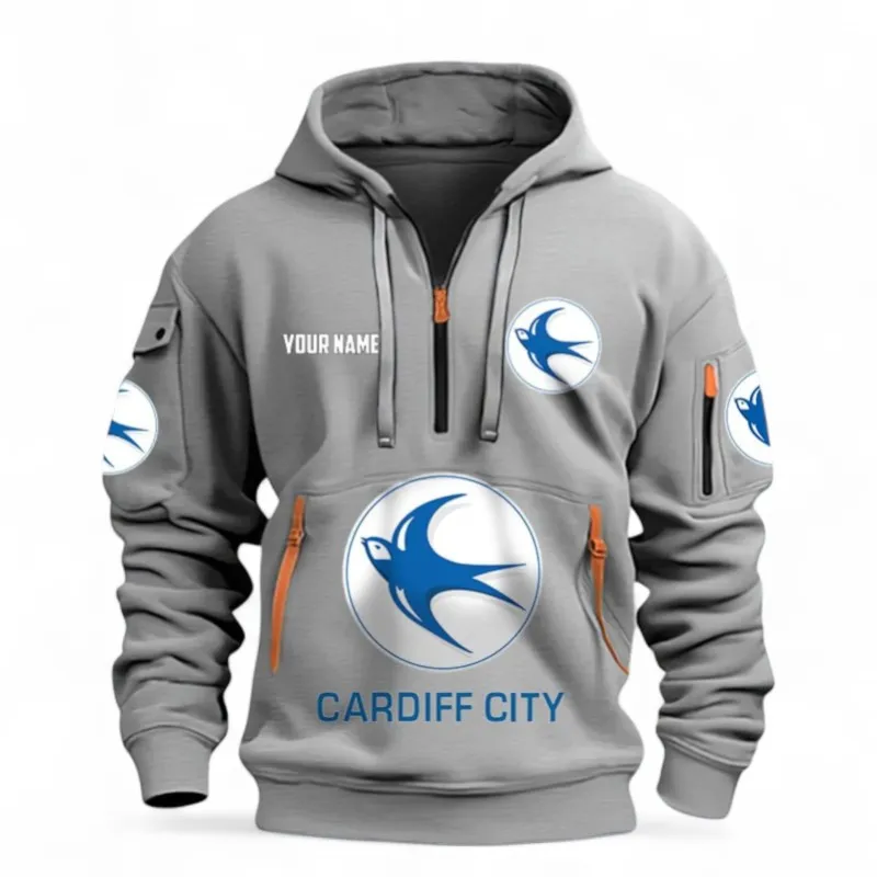 Cardiff City Fans Gift Hoodie Half Zipper, All Over Print Hoodie Half Zipper For Sport Fan, Custom Name EPL116073125038-Grey