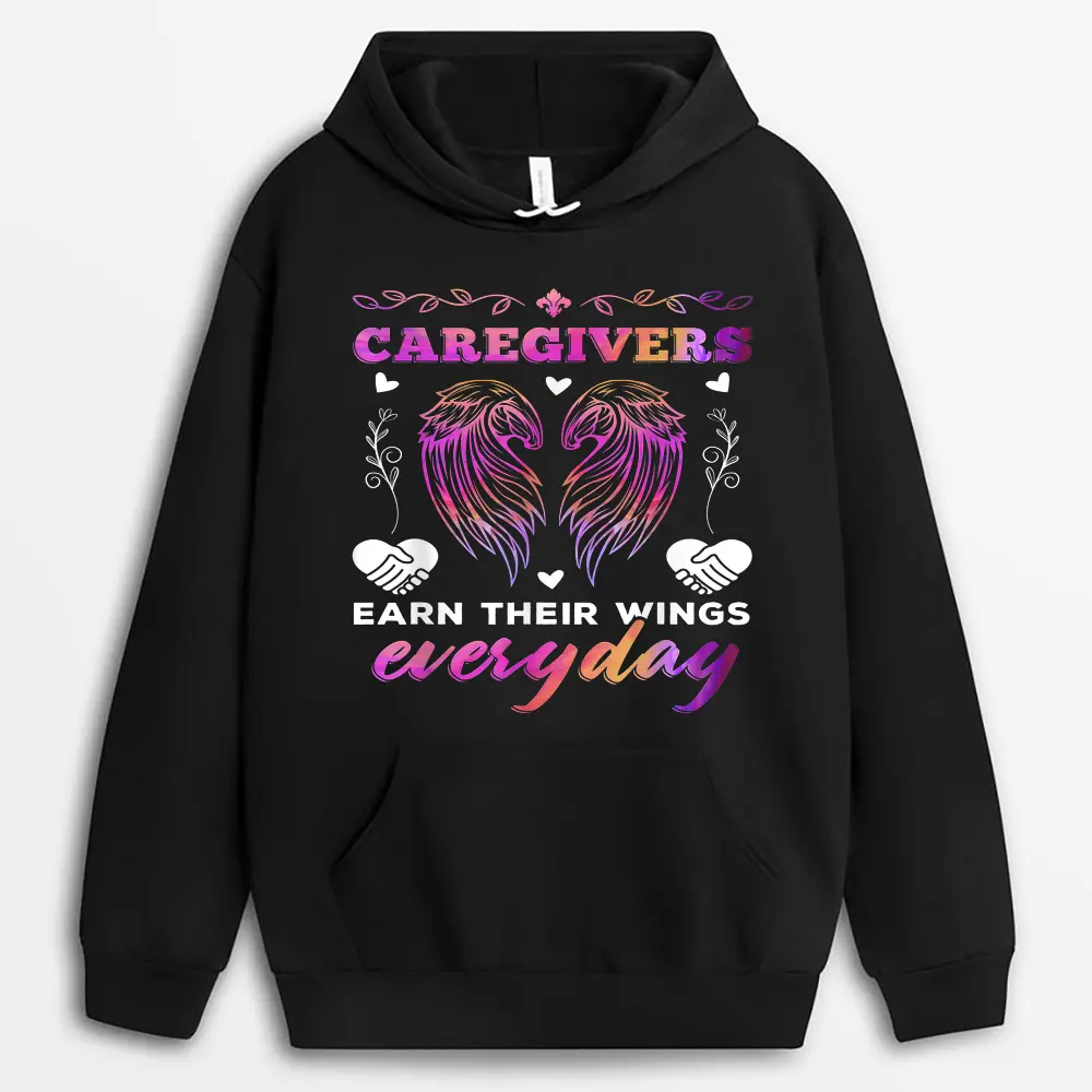 Caregivers Earn Their Wings Everyday Colorful Caregiving Hoodie – Black