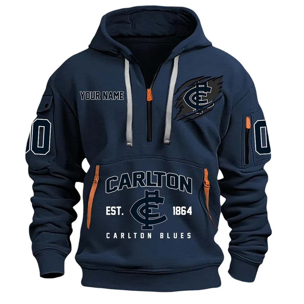 Carlton AFL Hoodie Half Zip AFL09120424060, Gift For Fan Carlton