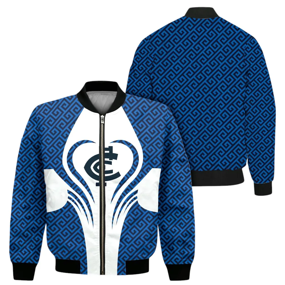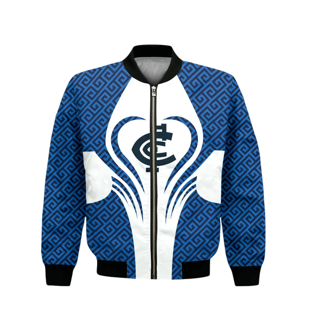 Rep your loyalty in style with this custom Carlton bomber jacket, built for fans who want to stay warm, look sharp, and show their pride all season long. With a classic silhouette and a fresh custom print, it’s the ultimate blend of team spirit and street-ready fashion.