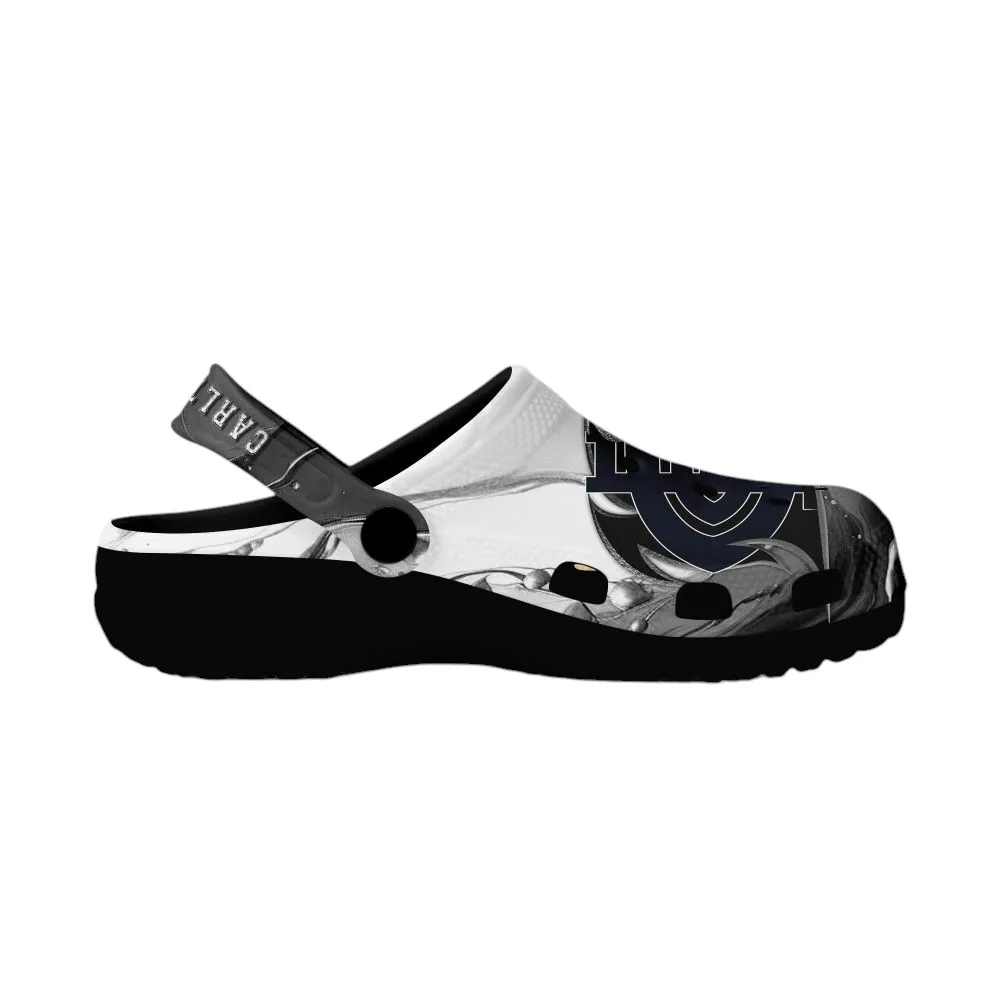 Custom Crocs for Carlton Fans – White and Black, Game Day Comfort, Everyday Style