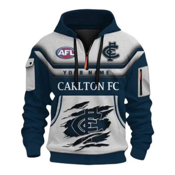 Carlton Fans Gift Hoodie Half Zip 3D, All Over Print Half Zip 3D For Sport Fan, Custom Name AFL164080225140-Style 1