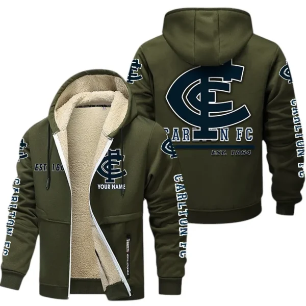 Carlton Fans Gift Lamb Fleece Thick Coat, All Over Print Thick Coat For Sport Fan, Custom Name AFL144071725131 – Army Green