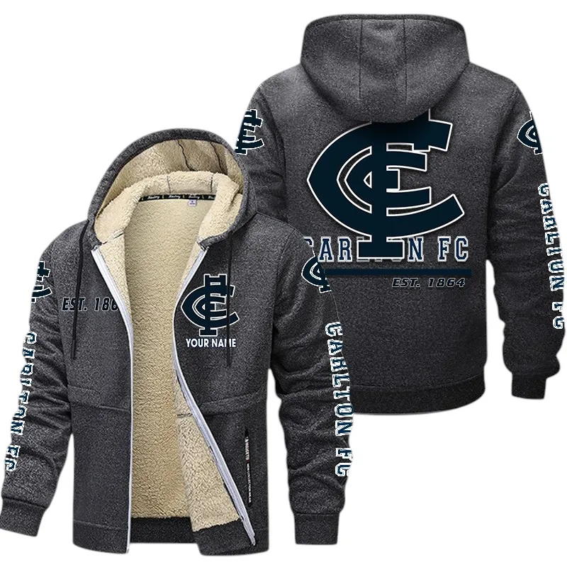 Carlton Fans Gift Lamb Fleece Thick Coat, All Over Print Thick Coat For Sport Fan, Custom Name AFL144071725131 – Dark gray
