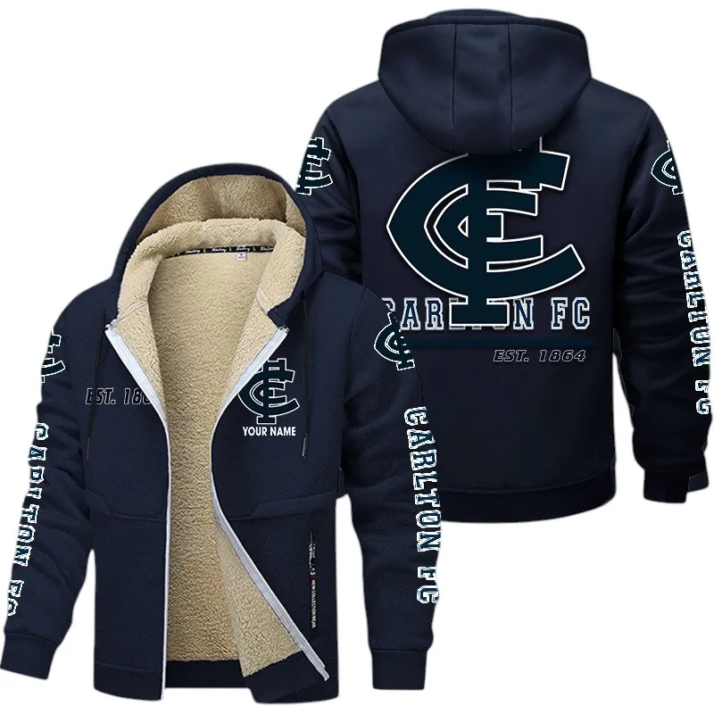 Carlton Fans Gift Lamb Fleece Thick Coat, All Over Print Thick Coat For Sport Fan, Custom Name AFL144071725131 – Navy blue
