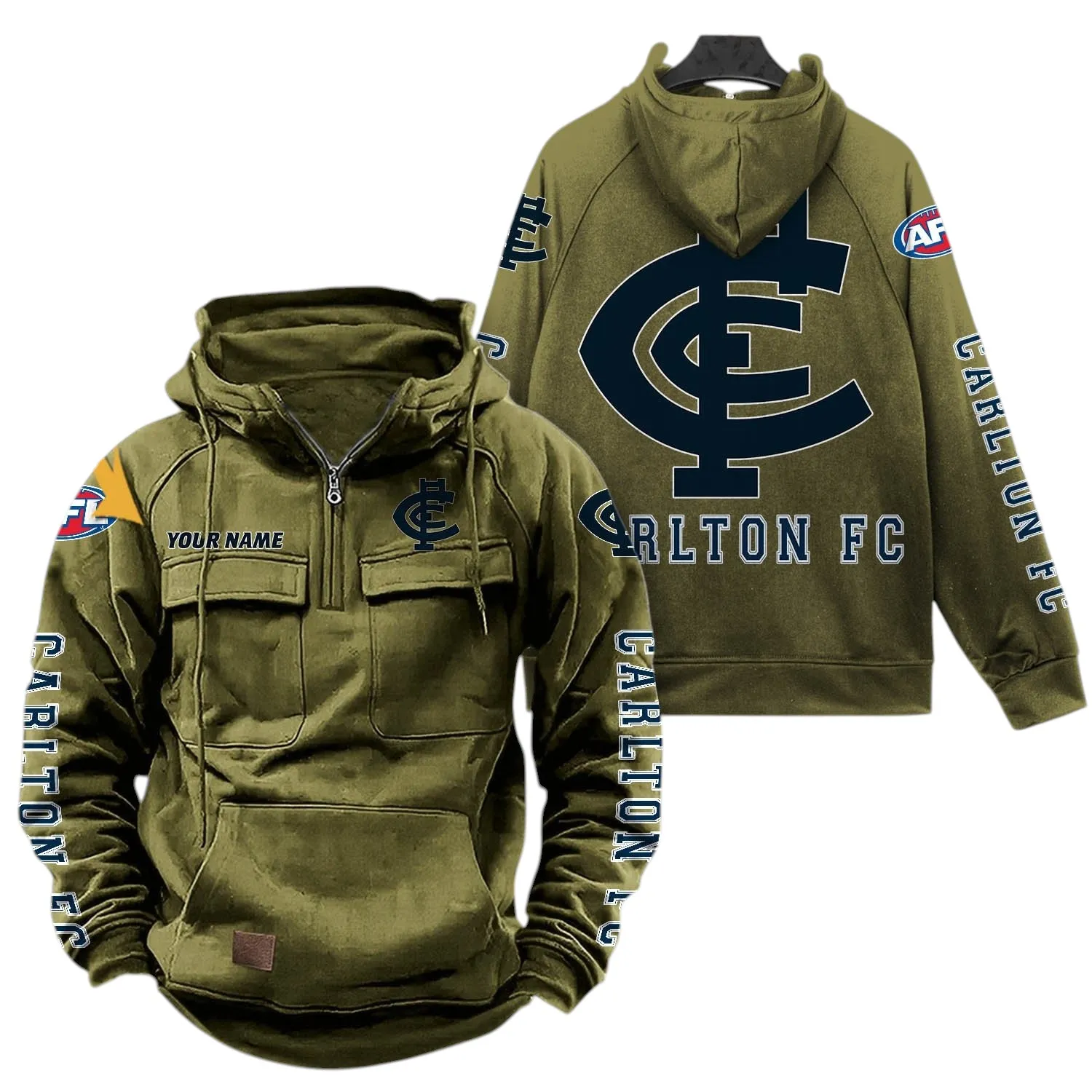 Rep your team with confidence in this high-performance Carlton tactical quarter-zip hoodie – the perfect blend of street style, utility, and fan pride. Whether you’re tailgating, training, or watching the big game, this hoodie keeps you warm, ready, and repping your team in every move.