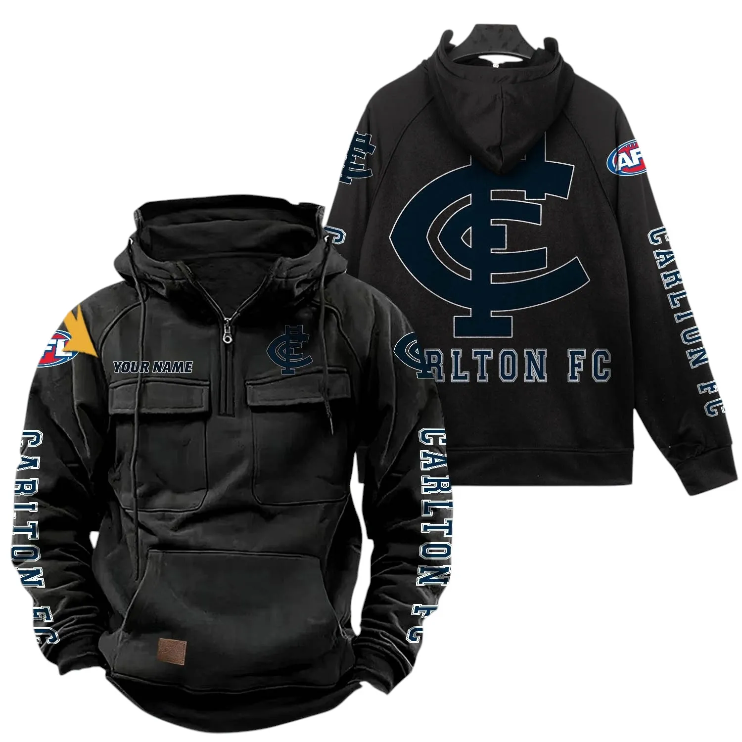 Rep your team with confidence in this high-performance Carlton tactical quarter-zip hoodie – the perfect blend of street style, utility, and fan pride. Whether you’re tailgating, training, or watching the big game, this hoodie keeps you warm, ready, and repping your team in every move.