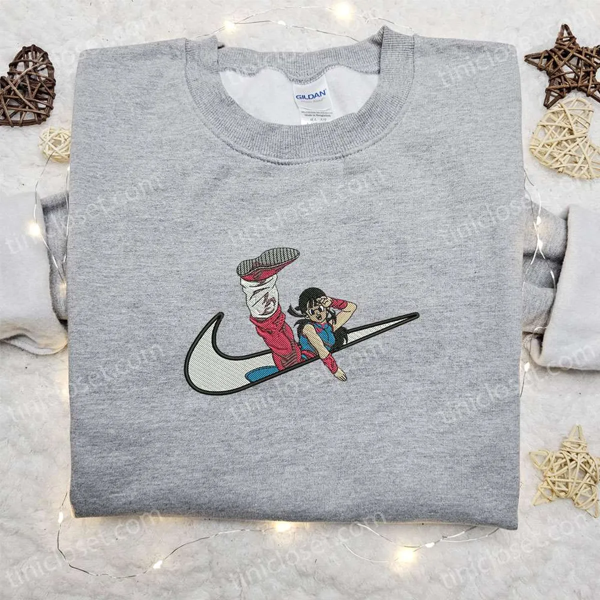 Chichi x Swoosh Anime Embroidered Hoodie, Dragon Ball Embroidered Shirt, Nike Inspired Embroidered Shirt