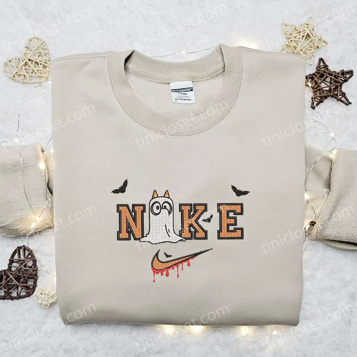 Chilli Heeler Ghost x Nike Embroidered Hoodie, Nike Inspired Embroidered Shirt, Best Halloween Gift Ideas