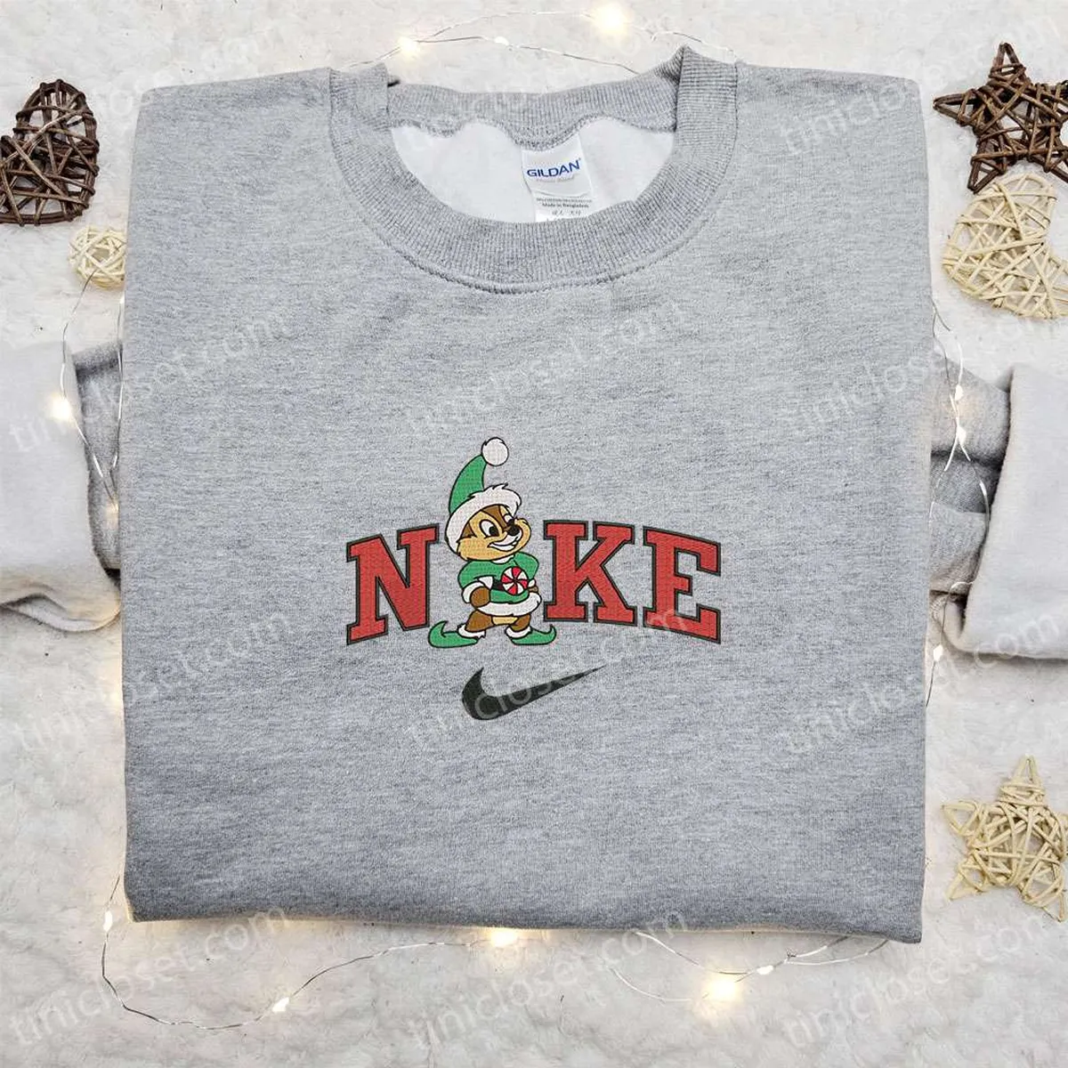 Chip Disney x Nike Christmas Embroidered Sweatshirt, Cartoon Christmas Embroidered Shirt, Best Christmas Gift Ideas