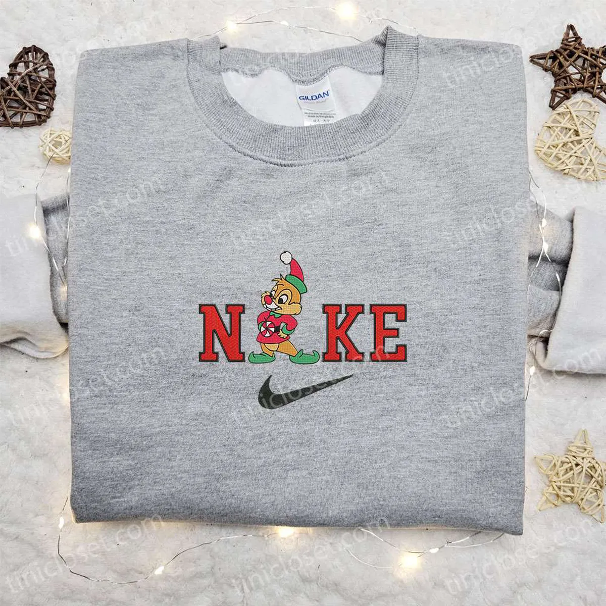Chip Fox x Nike Christmas Embroidered Sweatshirt, Disney Movie Christmas Embroidered Shirt, Best Christmas Gift Ideas