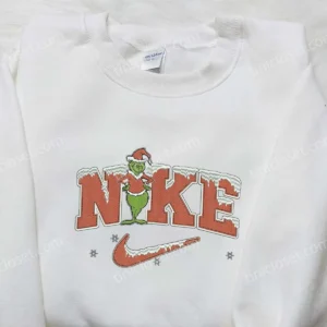 Christmas Grinch Face x Nike Embroidered Sweatshirt, Nike Inspired Embroidered Hoodie, Best Christmas Gift Ideas