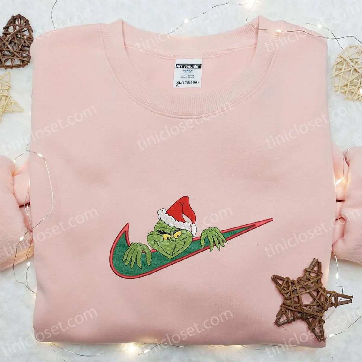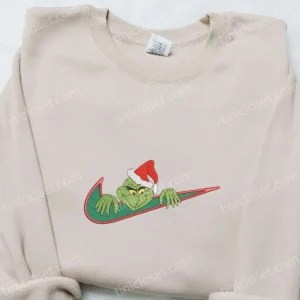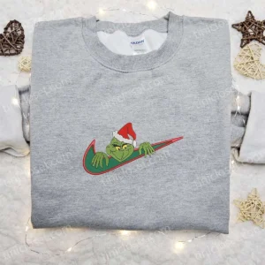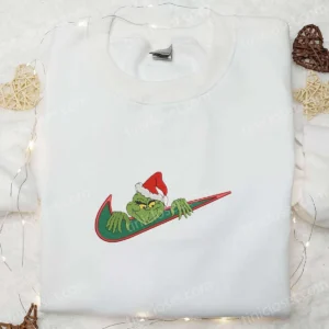 Christmas Grinch x Swoosh Embroidered Sweatshirt, Nike Inspired Embroidered Hoodie, Best Christmas Gift Ideas
