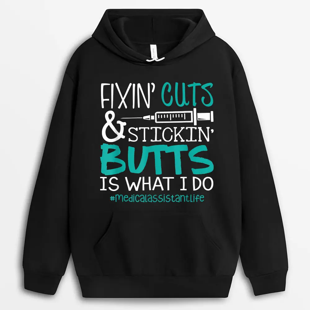 Cma T Fix Cuts Stickin Butts Medical Assistant Hoodie – Black