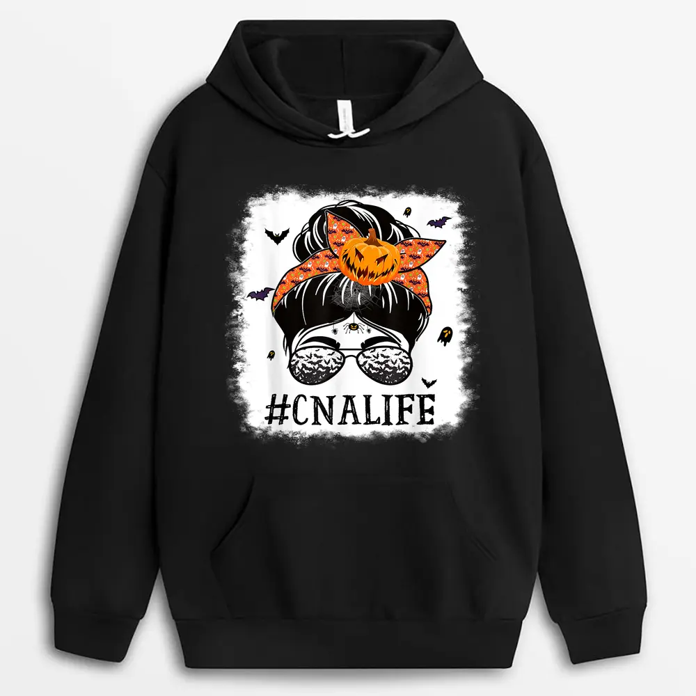 CNA Certified Nursing Assistant Messy Bun Spooky Halloween Hoodie – Black