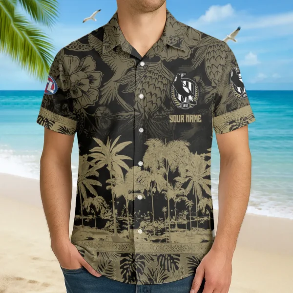 Collingwood Fans Gift Hawaiian Shirt, All Over Print Hawaiian Shirt For Sport Fan, Custom Name AFL157071425131