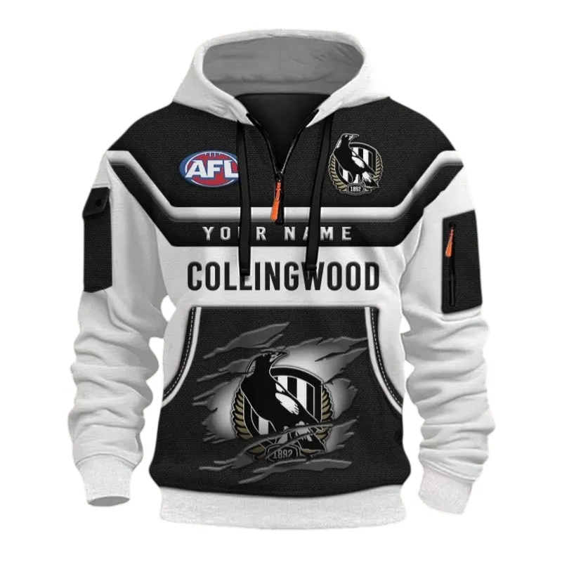 Custom Half-Zip Hoodie 3D Printed for Collingwood Fans – Game-Ready Comfort Meets Personalized Power