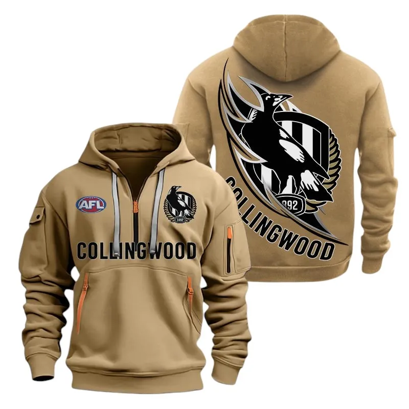 Collingwood Fans Gift Hoodie Half Zipper, All Over Print Hoodie Half Zipper For Sport Fan AFL142071225126 - Khaki
