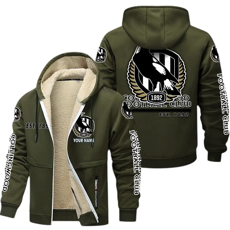 Collingwood Fans Gift Lamb Fleece Thick Coat, All Over Print Thick Coat For Sport Fan, Custom Name AFL144071725124 – Army Green