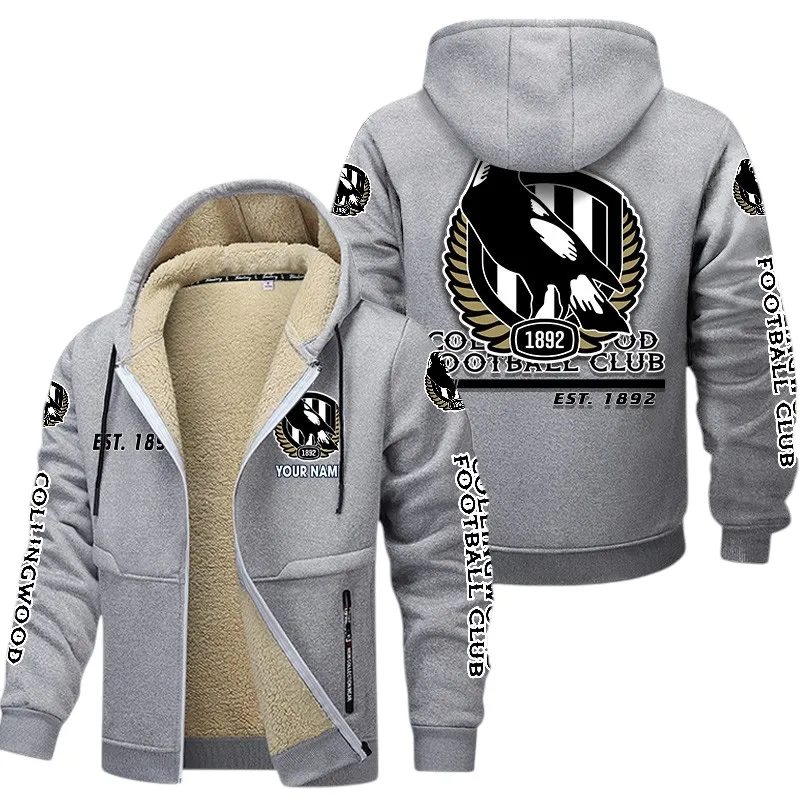Collingwood Fans Gift Lamb Fleece Thick Coat, All Over Print Thick Coat For Sport Fan, Custom Name AFL144071725124 – Light gray